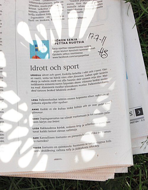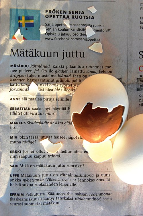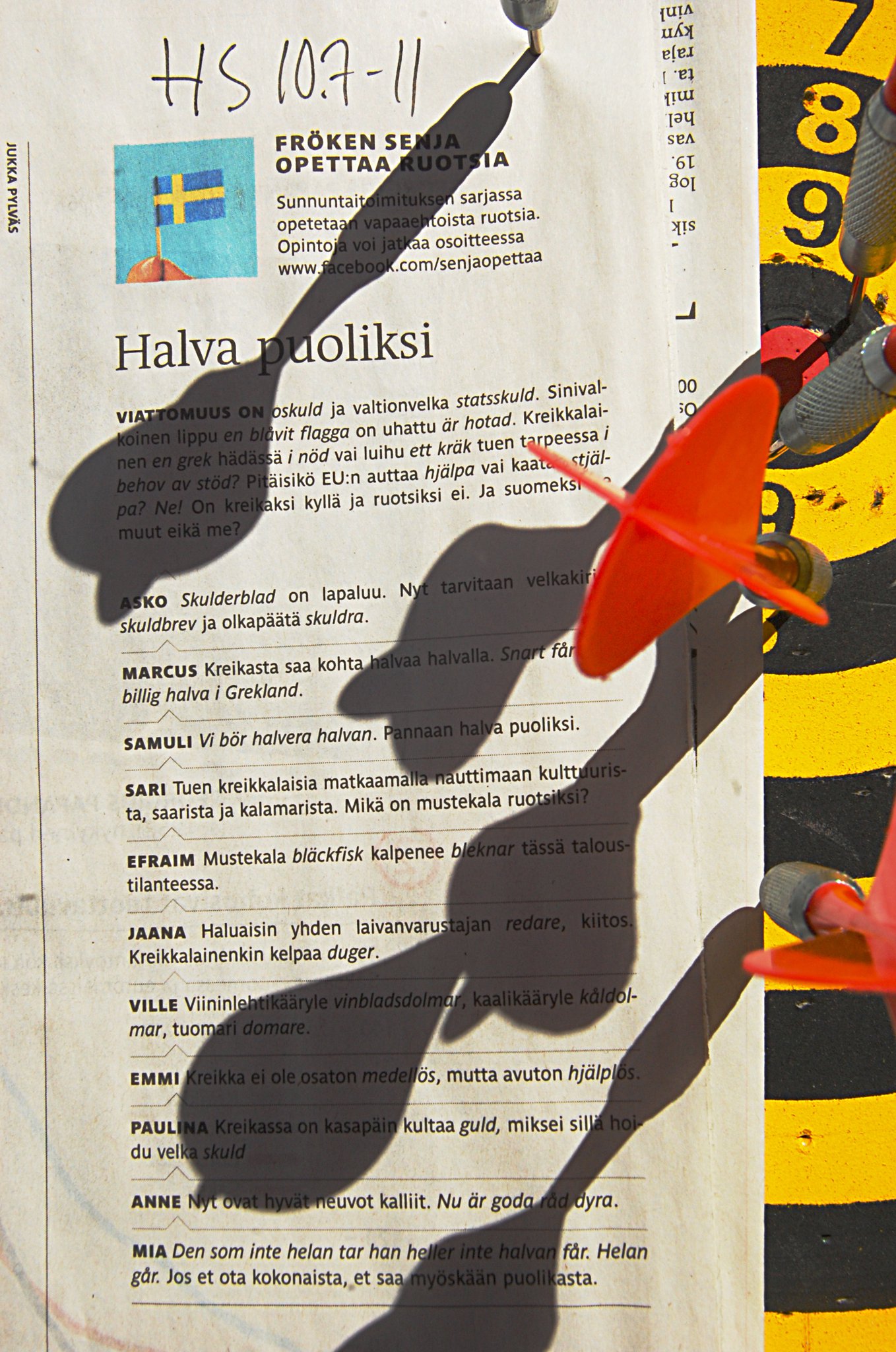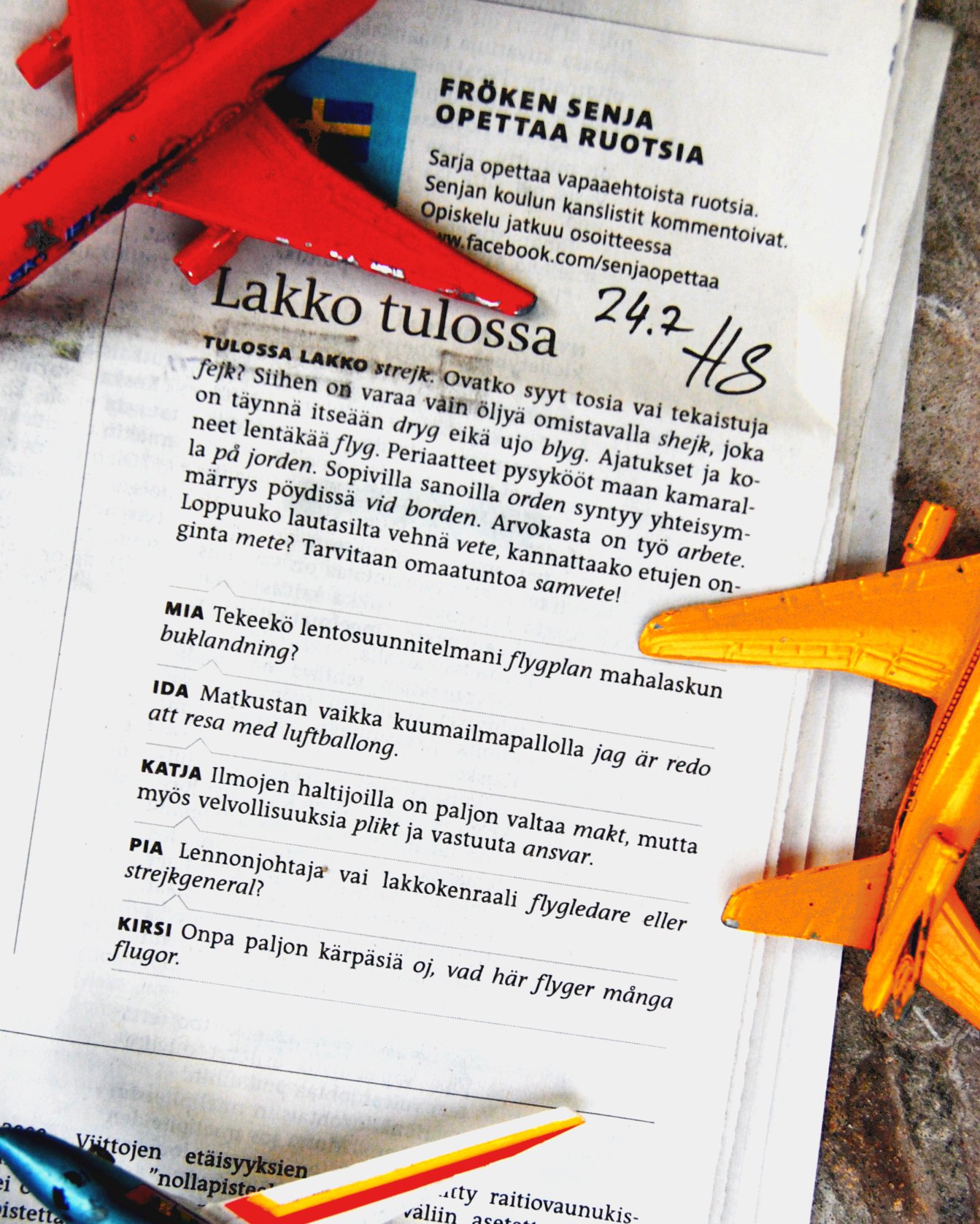 Kielen opettelu on oivaa aivojumppaa. Kielioppi GRAMMATIKEN on esterata. Ratkaisut mystisiä MYSTISKA ja kryptisiä KRYPTISKA kuin sokkelossa. Siirrot konstikkaita KNEPIGA ja ovelia KLURIGA kuin shakkipelissä. Kun luulee osaavansa, pöytään lyödään mustapekka SVARTE PETTER, nokkelan sukkela poikkeus FINURLIGT UNDANTAG. Mutta kimpassa TILLSAMMANS meillä on voimaa ja viisautta, jonka avulla ratkomme visaisetkin virkkeet.